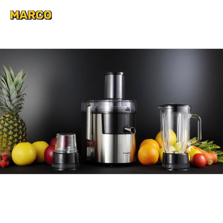 آبمیوهگیری «پاناسونیک» (Panasonic) مدل «MJ-DJ31» یکی از آبمیوهگیریهای چندکاره موجود در بازار است. دستگاه MJ-DJ31 با بدنهی مستحکم خود که از ترکیب استیل و پلاستیک مشکیرنگ ساخته شده است، ظاهر ساده و کلاسیکی دارد. این وسیله میتواند در آشپزخانهای مدرن و در کنار لوازم فلزی دیگر جلوه و هماهنگی بسیار خوبی داشته باشد. به همراه آبمیوهگیری MJ-DJ31 یک پارچ مخلوطکن و آسیاب کوچک نیز به کاربر عرضه میشود تا این دستگاه به یک دستیار حرفهای و همهفنحریف در آشپزخانه شما تبدیل شود.