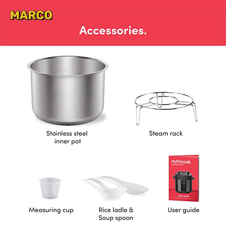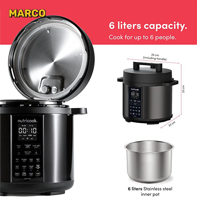 برنامه پخت و پز: 12 برنامه پخت و پز از پیش تعیین شده ( پلوپز - زودپز - آرام پز - سوپ پز - ماست بند - کیک پز - گرم نگهدارنده - بخار پز - خورشت پز )