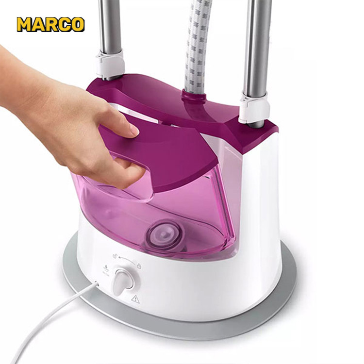 از اقلام همراه این دستگاه یک عدد میله و یک عدد گیره می باشند. که می توانید به راحتی لباس را روی آن آویزان کنید و به اتو کردن بپردارید. هر نوع لباس با هر جنس و کیفیتی به وسیله ی این دستگاه با سرعت و کیفیتی بالا اتو خواهد شد. و شما می توانید هر مقدار چین و چروک را به راحتی با این اتوبخارگر ایستاده از بین ببرید. رنگ این محصول ترکیبی از سفید و بنفش است که رنگ های مکملو جذابی هستند و جلوه ای بسیار زیبا و جالب توجه به محصول بخشیده اند.