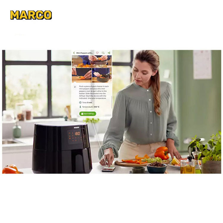 این دستگاه هواپز 9280 فیلیپس مجهز به یک تکنولوژی فوق العاده ایده آل برای آسودگی خاطر شما میباشد، که بدون نیاز به سر زدن به دستگاه شما را از مرحله پخت مواد غذایی مطلع میکند. با اتصال دستگاه خود به WIFI زمانی که روی مبل خود در منزل نشستهاید پیام آماده شدن غذای را دریافت کنید تا احتیاجی به نظارت مداوم به غذا نداشته باشید. بهوسیله فعال شدن کنترل صوتی قابلیت سازگاری و انطباق با AMAZON ALEXA وجود دارد و میتوانید از این قابلیت استفاده کنید.