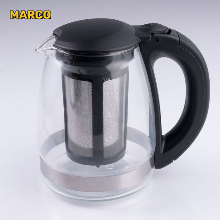 بدنه کتری و قوری این محصول از نوع شیشه ای پیرکس با تحمل گرمایی بسیار بالا بوده که خرابی را به حداقل میرساند.