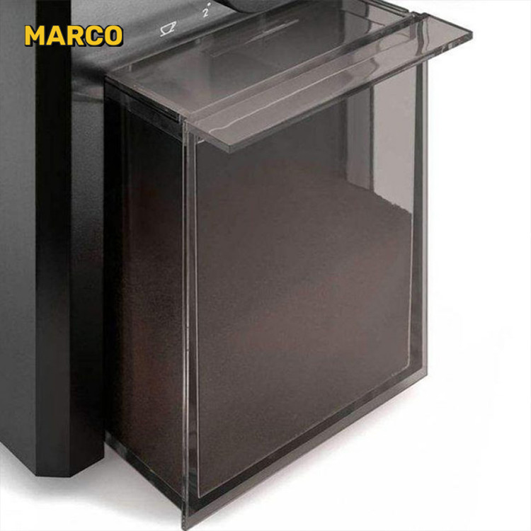 مخزن دانهها و پودر قهوه شفاف و دودی میباشد که جذابیت دستگاه را کامل کرده است و دانه و پودر قهوه قابل مشاهده است. ولومی که برای تنظیم مقدار قهوه آسیابی بر حسب تعداد شات است، در جلوی دستگاه تعبیه شده که کار را برای شما بسیار راحت میکند.