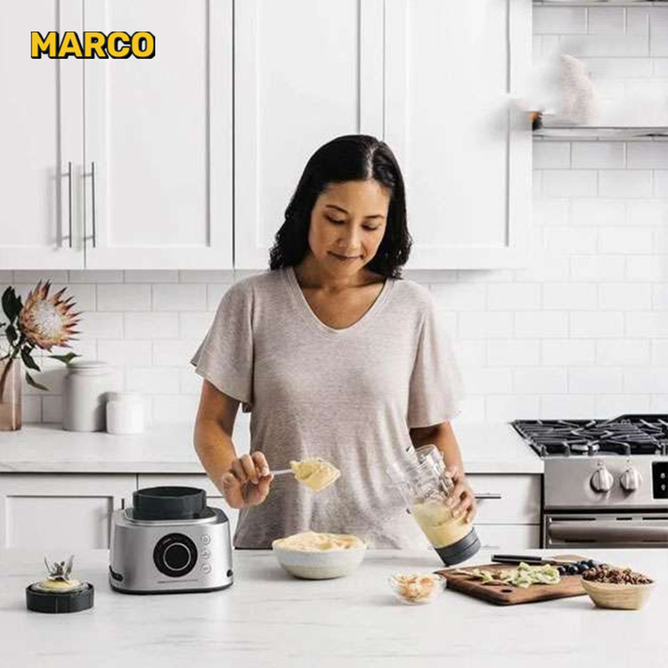 پارچ ۵۳۰ میلی لیتری مختص تهیه سس، پوره و کره ها با بافت ضخیم و مجلسی کاربرد دارد. مواد تهیه شده آنقدر بافت ضخیمی دارند که از قاشق نمی افتند. بنابراین با خوراکی های مورد علاقه تان در فروشگاه رقابت می کنند. از کره های آجیلی صاف و ترد بادام زمینی گرفته تا بادام، خمیر غلیظ، ماست یخ زده و غیره لذت ببرید.