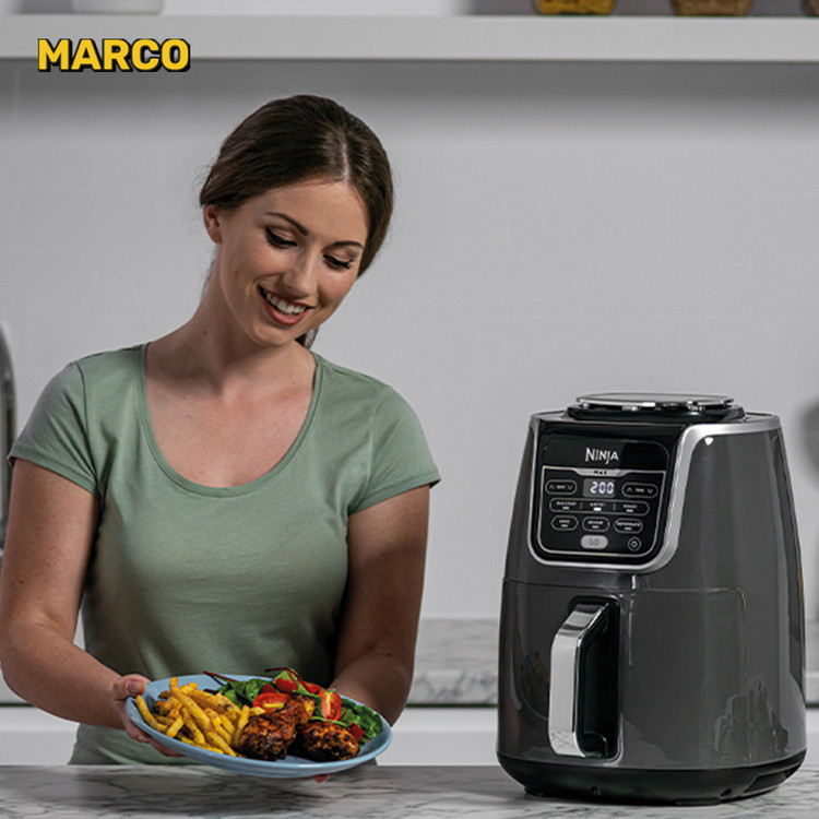 سرخ کن بدون روغن Air Fryer Ninja AF160 محصولی بسیار مناسب و کاربردی میباشد که توسط برند معتبر نینجا تولید شده است. دارای ۶ برنامه پیش فرض ( Max Crisp, Air Fry, Roast, Bake, Reheat, Dehydrate ) (ترد ، سرخ کن ، کباب ، پختن ، گرم کردن ، میوه خشک کن) جنس سبد سرامیک نچسب قابل شستشو در ماشین ظرفشویی دارای تکنولوژی Max Crisp که می توانید مواد غذایی فریز شده را بدون وقفه بپزید. قابلیت شخصی سازی هر برنامه ( تغییر زمان و دما)