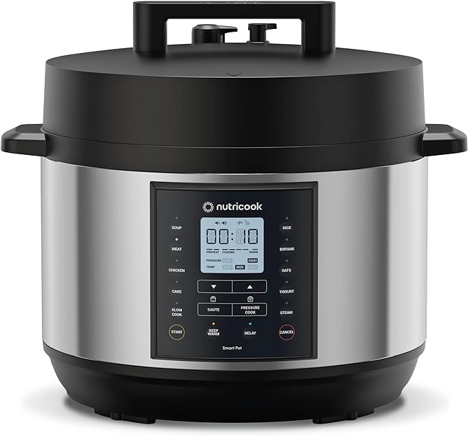 Nutricook Smart Pot 2 Plus 1500 Watts - 9 Appliances in 1, Pressure Cooker, Slow Cooker, Rice Cooker, Steamer, Sauté Pot, Yogurt Maker, Soup Maker, Cake Maker, Food Warmer, 9.5L, Brushed SS/Black
