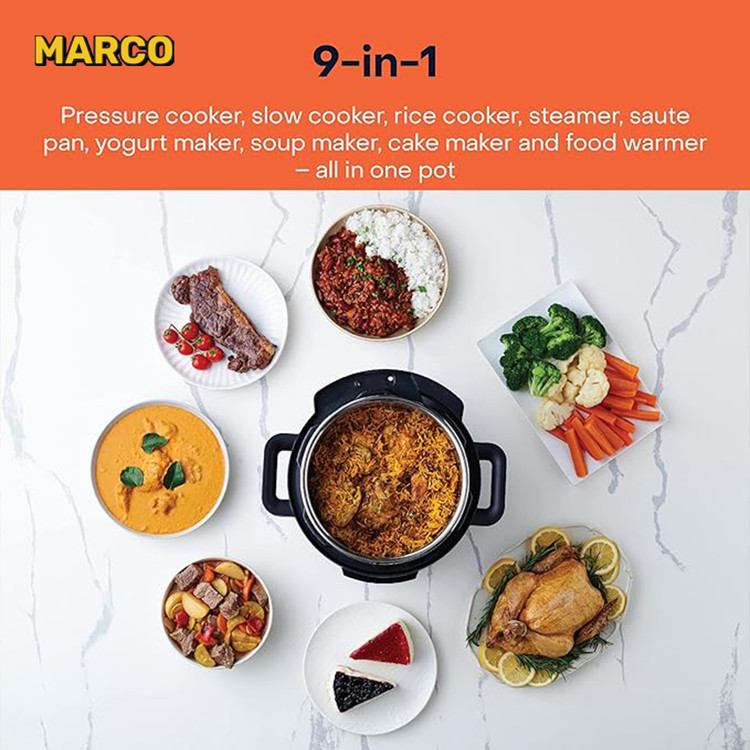 زودپز برقی نوتریکوک 9.5 لیتری مدل 210 دستگاهی با سیستمهای ایمنی پیشرفته و مجهز جهت پخت و پز چندمنظوره با برنامههای خودکار است. از عمکلردهای تحت فشار زیاد زودپز برای طبخ گوشت هایی با بافت ضخیم گرفته تا حالتهای متنوع آرام پز برای آماده سازی خورشت، پخت تخصصی برنج، حالتهای بخارپز و…همه بخشی از برنامههای پیش فرض این مولتی کوکر هستند. کاسه استنس استیل این دستگاه با کمترین نیاز به روغن میتواند در کمترین زمان، غذای مورد نیاز برای 7 الی 9 نفر را پخت کند. توان پخت 1500W دستگاه به نسبت ظرفیت میزان متعادل و مطلوبی برای پخت های سریع و پرفشار است.