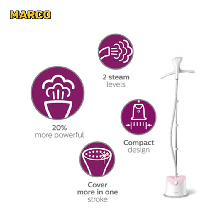 اتو بخارگر فیلیپس Philips GC484 یکی از جدیدترین و با کیفیت ترین محصولات این کمپانی با سابقه اروپایی می باشد که کار شما را برای اتو کردن انواع مختلف پارچه ها بسیار آسان کرده است. این محصول با توان مصرفی 1800 وات و مخزن آب 1.4 لیتری یک اتوی بسیار کاربردی می باشد. این دستگاه دارای یک میله با قابلیت تنظیم ارتفاع و صفخه بخارگر با سایز مناسب است. این بخارگر EasyTouch به صورت جمع و جور، و در عین حال قدرتمند طراحی شده و در مقایسه با مدلهای قبلی و تولید 35 گرم در دقیقه بخار مداوم در نازل ها، 20٪ قدرتمندتر گردیده است