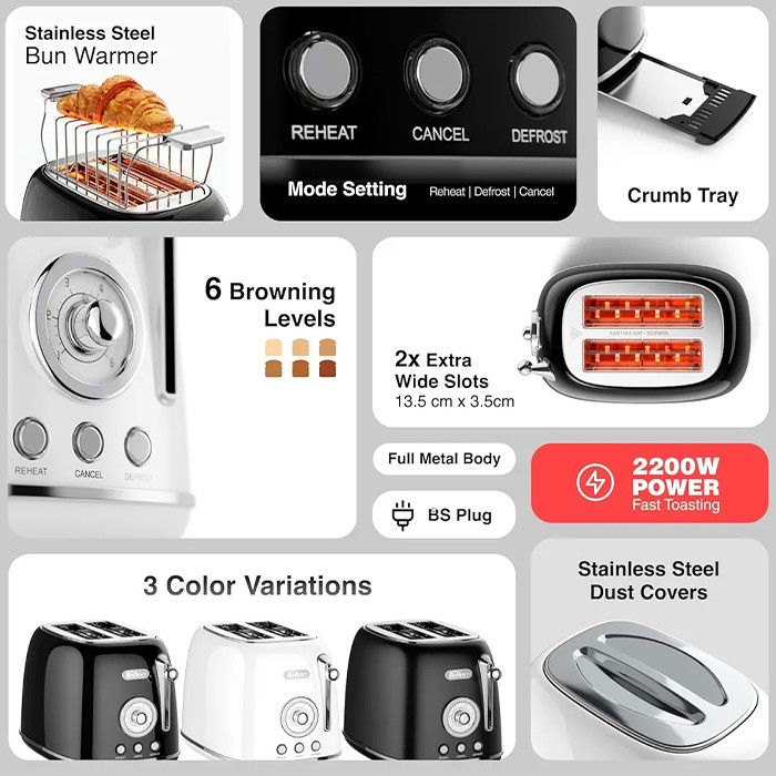 دارای استریلیت پوشش ضد گرد و غبار, دارای بدنه فولادی بادوام با طراحی کلاسیک, دارای پایه شیرینی گرم کن, دارای سینی خرده نان قابل جابجایی برای نظافت آسان