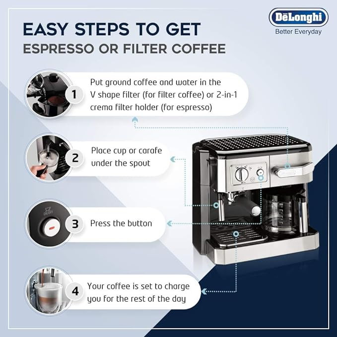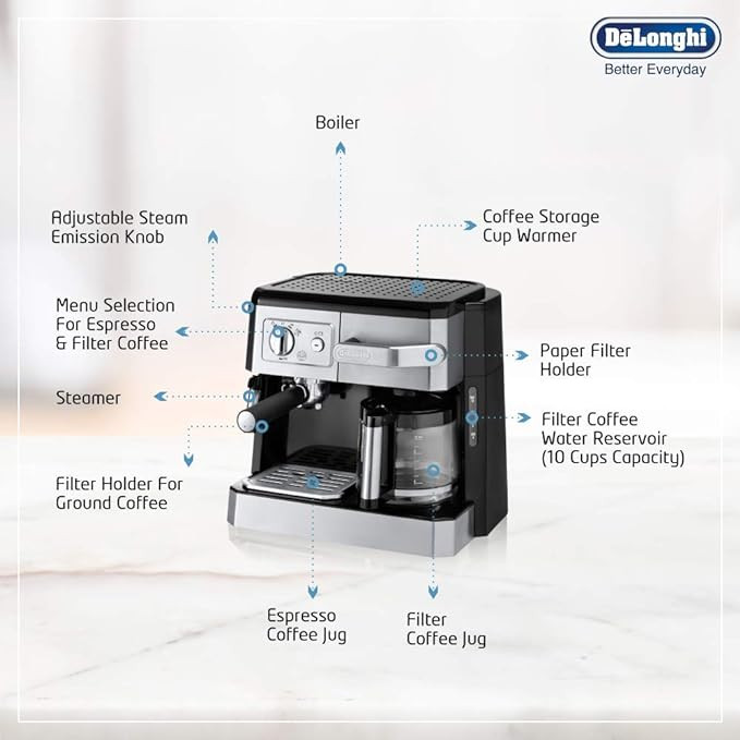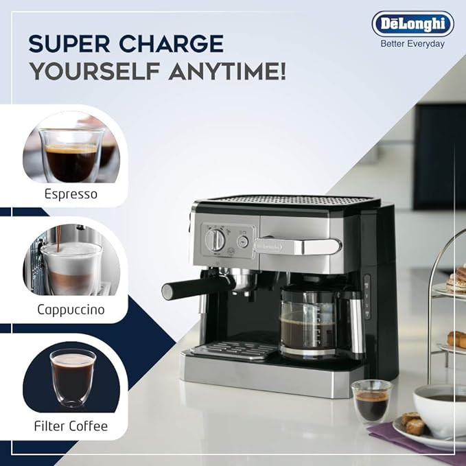 De'Longhi Combi Espresso and Filter Coffee Machine, BCO420, Silver
