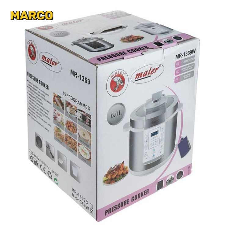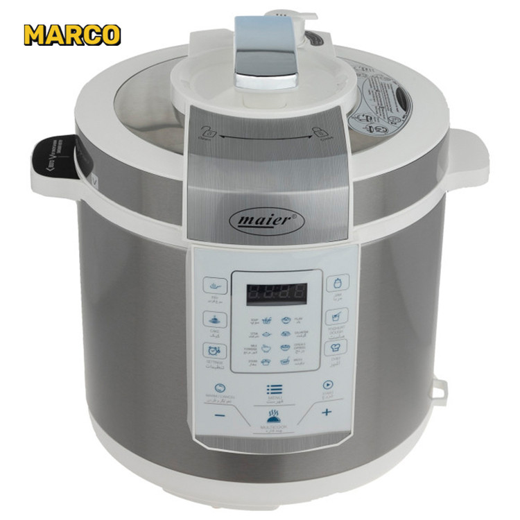 پلو پز مایر مدل MR-1369 تنها یک پلوپز ساده و معمولی نیست، عملکرد یک زودپز را نیز در خود دارد. این دستگاه فوق العاده میباشد که قابلیت و ویژگیهای بسیاری دارد با تهیە و خرید پلوپز مایر این امکان را دارید تا به پخت متنوع ترین غذاها در کمترین زمان ممکن بپردازید. بدنه آن از جنس استیل مقاوم و جنس داخل دیگ از تفلون نچسب تهیە شدە است .توان مصرفی پلوپز 1000 وات است که بسیار سریع هرچه که در آن قرار دهید پخت و در اختیارتان میگذارد. ظرفیت پلوپز دیجیتالی مایر مدل MR-1369 برابر با 6 لیتر است که برای خانواده ای پر جمعیت نیز موردی مناسب است. پلوپز برقی مایر مدل 1369-MR با داشتن برنامه های پیش فرض در خود این امکان را به شما میدهد تا با انتخاب کردن یکی از این برنامه ها بە صورت اتوماتیک زمان و میزان فشار را تعیین کنید. این محصول ویژگی های مانند لغو کردن پخت و پز،سیستم محافظت در مقابل حرارت بیش از حد و سیستم پخت سریع برای صرفه جویی در وقت و گرم نگە داشتن غذا را نیز دارا است. این پلوپز برای پخت گوشت قرمز _ لوبیا_پوره_ابگوشن _سیب زمینی_آبگوشت_برنج_ماست و کیک و…از قبل برنامه ریزی شده و نیز این اختیار را دارید تا از طریق صفحە نمایش LCDزمان را کم یا زیاد کنید و فشار را بر حسب آن تغییر کند و بە صورت خودکار تنظیم شود.