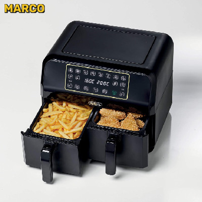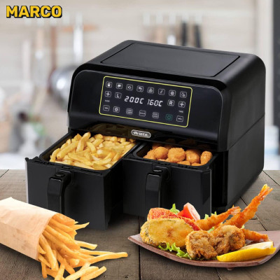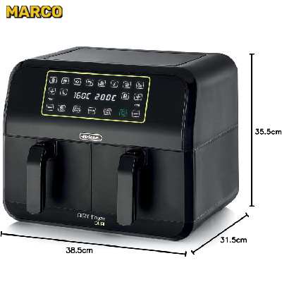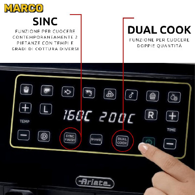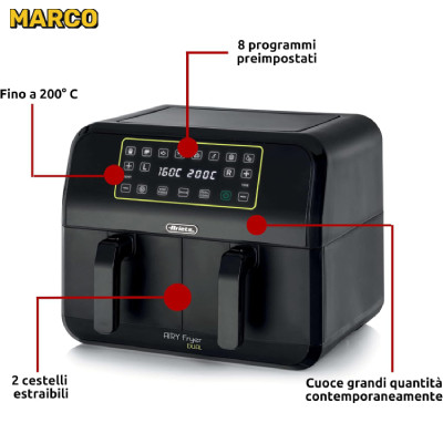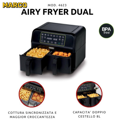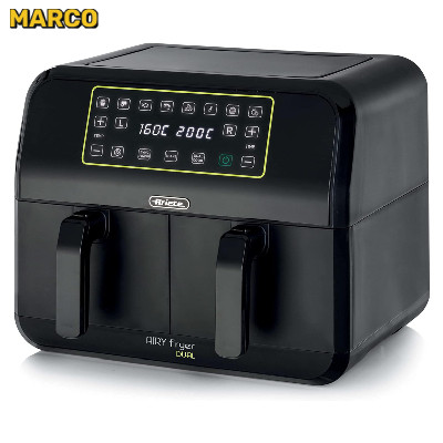 Ariete 4623 Airy Fryer Dual, Air fryer with double basket, 1700 W, 8 L capacity, 3 cooking functions, digital LED touch panel, 8 preset programs, timer, 2 baskets, black (by Delonghi Group)