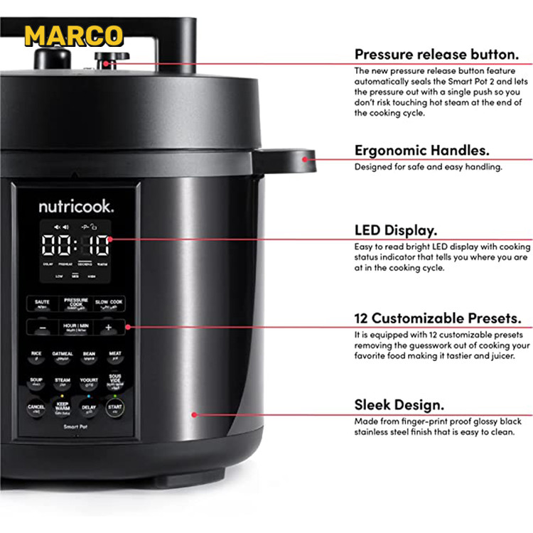 مولتی کوکر هوشمند 9 کاره 8 لیتری نوتریکوک اورجینال Nutricook Smart Pot 2 SP208K ارسال فوری