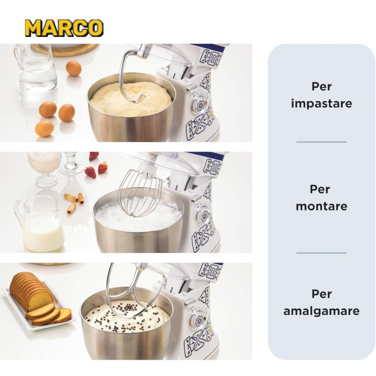 یک قلاب خمیر برای خمیر سفت، یک همزن برای خمیرهای نرم و یک همزن برای هم زدن