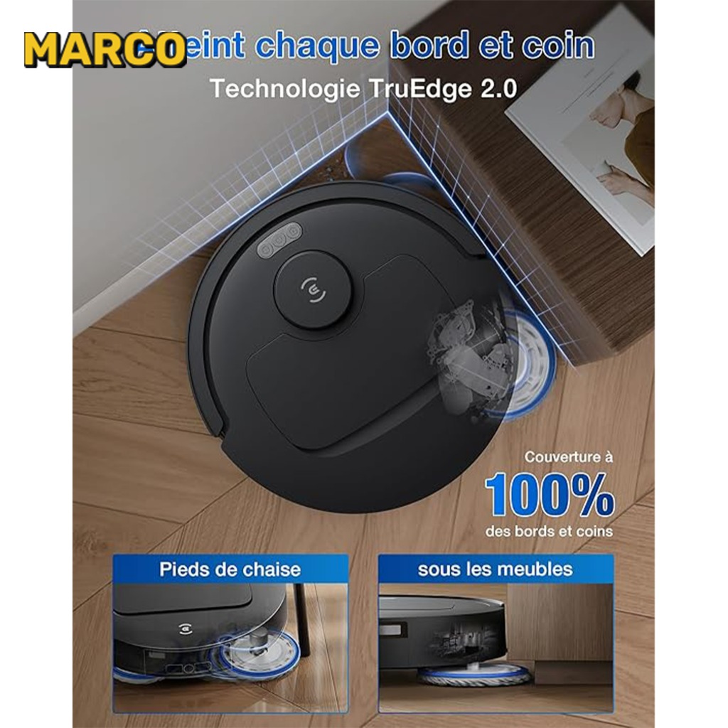 فناوری TruEdge به کمک بازوی شناور و الگوریتمهای هوشمند، باعث میشود جارو با دقت بالا حتی لبهها و گوشهها را هم تمیز کند – تا فاصله 1 میلیمتر از دیوار! این سیستم پوشش 99٪ مناطق دور از دسترس را تضمین میکند.