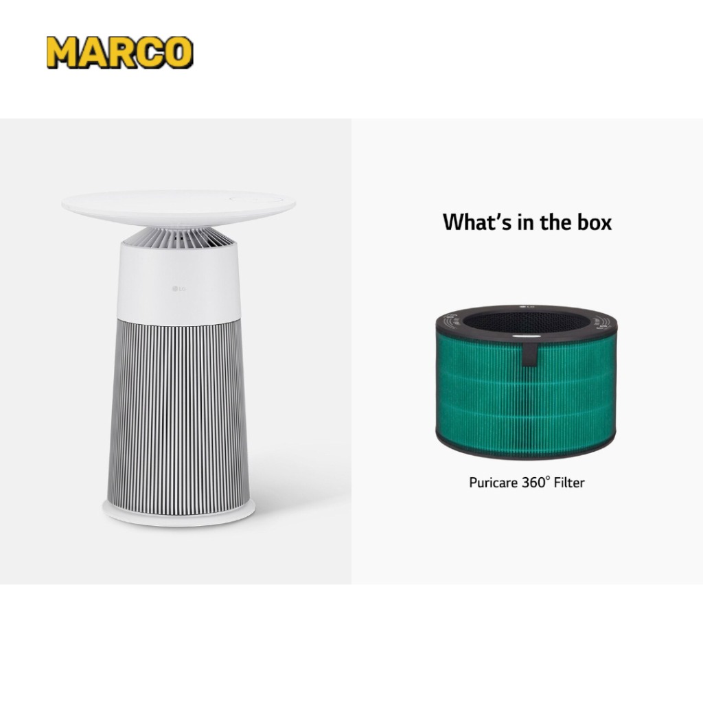LG PuriCare AS20 محصولی متفاوت از الجی است که طراحی یک میز شیک خانگی را با قدرت تصفیه هوای 360 درجه ترکیب میکند. این دستگاه نهتنها یک نقطهٔ دکوراتیو زیبا در خانه است، بلکه هوای اطراف را با فیلتر HEPA پیشرفته تصفیه میکند و آرامش و پاکیزگی را به محیط زندگی شما میآورد.