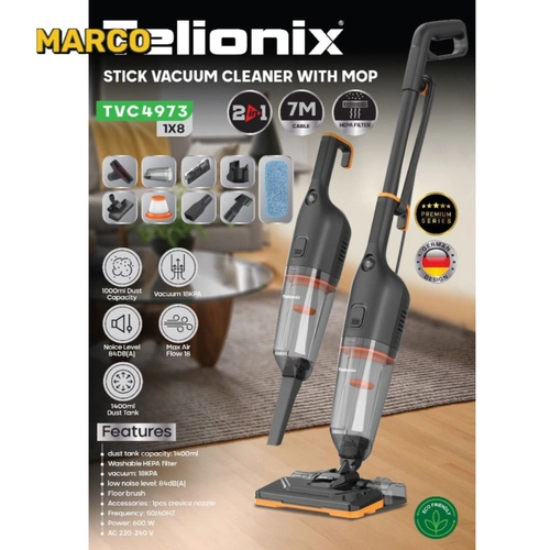 جارو عصایی تلیونیکس مدل TVC4973 – دو کاره (جارو + طی)، توان 600 وات