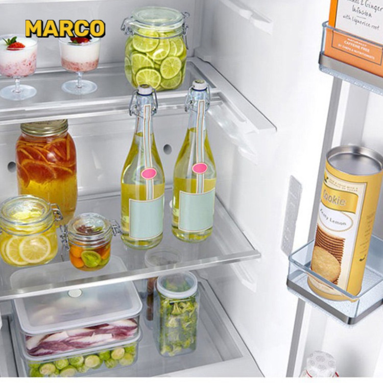 طبقات یخچال : 2 کشوی شفاف, 5 طبقه در یخچال شامل 1 طبقه تاشو, 7 قفسه در درب یخچال شامل 1 قفسه صبحانه