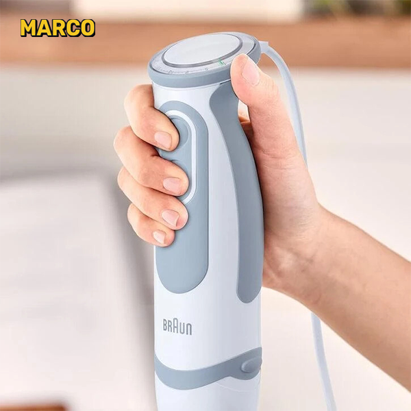 گوشت کوب برقی براون مدل MQ5200 محصولی باکیفیت، شیک و خوش ساخت از برند معتبر و پرآوازه براون بوده و به رنگ سفید در بازار عرضه می گردد. دسته محصول از طراحی ارگونومیک پیروی می کند. این دسته از جنس پلاستیک نرم ساخته شده و قسمت بالایی باریک تر طراحی شده تا در آشپزی کنترل بیشتری داشته باشد.