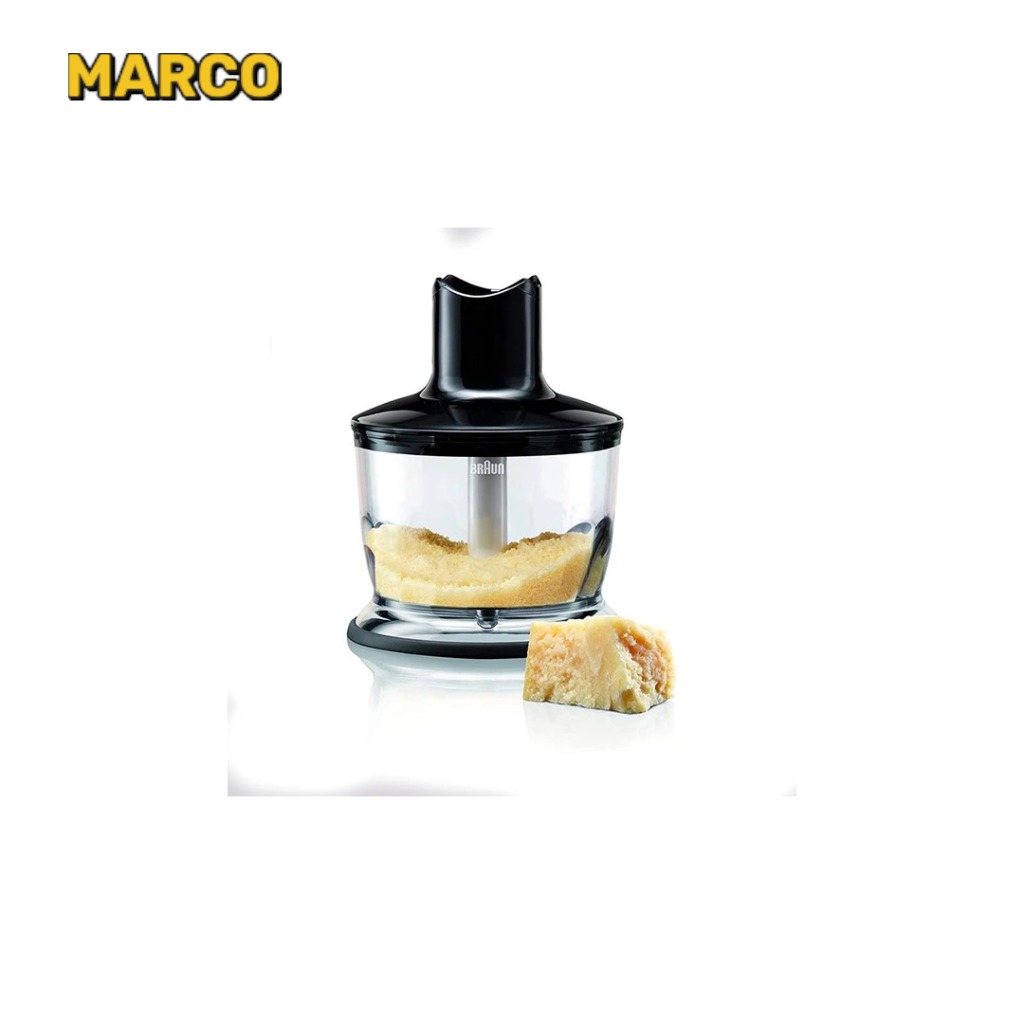 گوشتکوب برقی براون MQ 7045X خوش دست و زیبا مجهز به خردکن بزرگ برای خرد کردن یخ و مواد غذایی سفت است و خرد کن کوچک آن برای خردکردن سبزیجات آجیل ها پیاز و گوشت و غیره به کار می رود. در کنار این محصول همزنی به شکل بالون قرار دارد که از استیل ضد زنگ و مقاوم ساخته شده است و برای هم زدن سفیده تخم مرغ خامه و مایه کیک به کار می رود. هم چنین یک عدد پیمانه با درجه بندی برای خرد کردن مواد غذایی و یک پیمانه شفاف درجه بندی شده به همراه این گوشت کوب برقی است که می توانید بسته به نیازتان از آن ها برای اندازه گیری حجم مواد غذایی استفاده کنید.