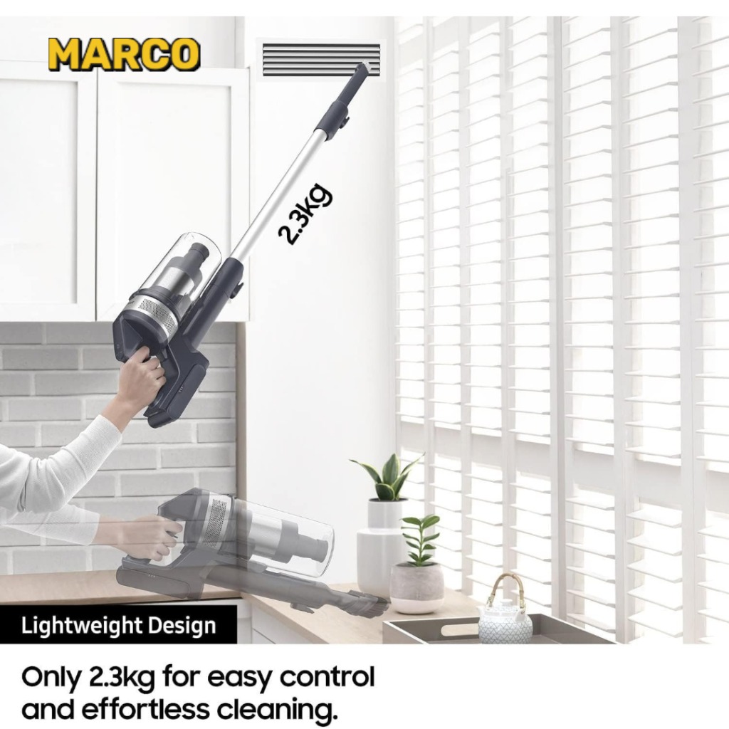 این جارو شارژی2.3 کیلوگرم وزن دارد و 250 در 203 در 120 میلی متر ابعاد آن را تشکیل میدهند. این جاروی شارژی، توان مکش 150 وات دارد و یک مخزن 0.8 لیتری دارد که میتوانید آن را بشویید. ارتفاع جارو قابل تنظیم است و همانطور که زودتر اشاره کردیم این جارو میتواند به یک جاروی دستی و کوچک تبدیل شود که توسط آن بتوانید روی مبل و بخشهایی از دیوار را تمیز کنید یا حتی آن را داخل ماشین ببرید و صندلیها و کفی ماشین را نظافت کنید. اگر هم بخواهید میتوانید جارو شارژی سامسونگ مدل JET 60-VS15A6031R4 را برای تمیز کردن زمین استفاده کنید و دسته آن را کوتاه نکنید. این محصول با یک باتری لیتیوم یونی کار میکند که برای شارژ شدن، نیاز به 210 دقیقه زمان دارد. پس از آن میتوانید به مدت 40 دقیقه با جارو کار کنید. میزان تولید صدای این جارو 86 دسی بل است. به همین علت، بهتر است آن را در مواقعی که کسی مشغول استراحت نیست روشن کنید.