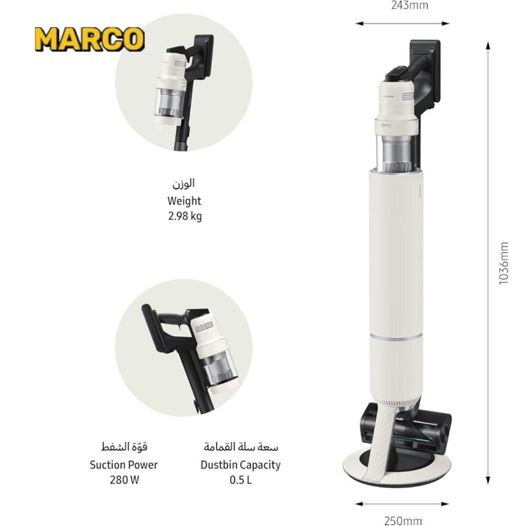 ویژگی های خاص: بیسیم، سیکلونی، تخلیه خودکار