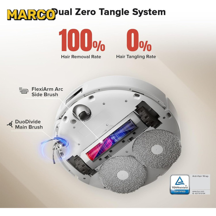 تیکشی Roborock Qrevo Curv چندین سطح را پوشش میدهد، از کفهای سخت مانند چوب و سرامیک تا فرشهای حساس. رطوبت تی بهطور هوشمند تنظیم میشود تا از آسیب به سطوح جلوگیری کند. این فناوری ناحیهای یکنواخت و بدون لکه ایجاد میکند. تی با دقت بالا و بدون نیاز به دخالت مداوم کاربر، نواحی بزرگتری را پوشش میدهد.