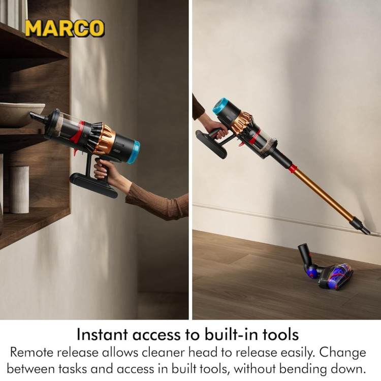 موتور دیجیتالی Hyperdymium™ در Dyson V16 با سرعت چرخش بالا و توان 900 وات، گرد و غبار و زبالهها را حتی از عمیقترین بخشهای فرش و کفپوش جدا میکند. سیستم Dynamic Cyclones نیز با فناوری جداسازی هوا و ذرات، مکش یکنواخت و بدون افت قدرت را تضمین میکند.