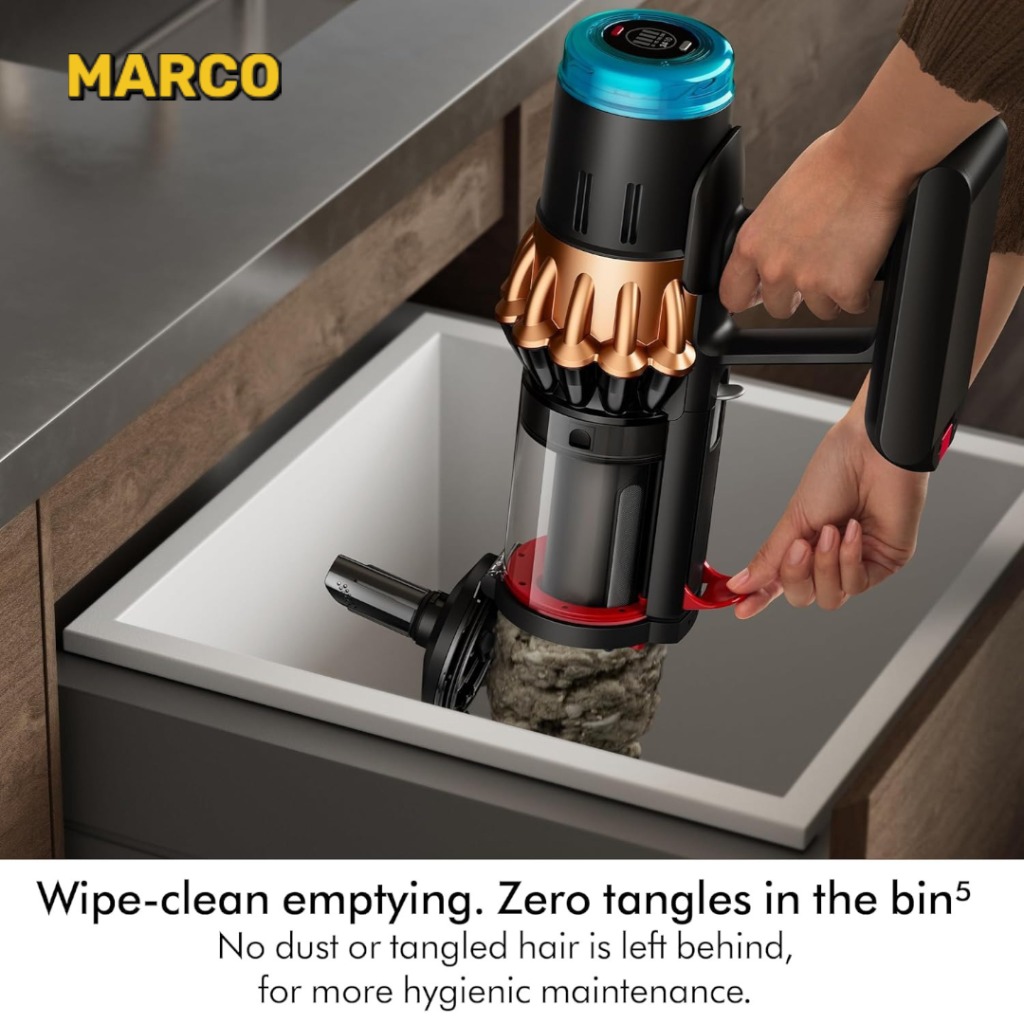 موتور دیجیتالی Hyperdymium™ در Dyson V16 با سرعت چرخش بالا و توان 900 وات، گرد و غبار و زبالهها را حتی از عمیقترین بخشهای فرش و کفپوش جدا میکند. سیستم Dynamic Cyclones نیز با فناوری جداسازی هوا و ذرات، مکش یکنواخت و بدون افت قدرت را تضمین میکند.