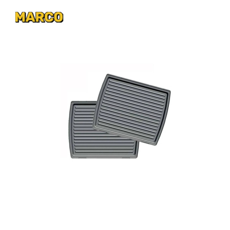تعداد سینی های این دستگاه 4 عدد بوده و دارای اشکال مختلف برای تهیه انواع غذاها می باشد. دو سینی طرحی موازی دارند و برای پخت گوشت، سوسیس و کالباس بسیار مناسب هستند. دو سینی دیگر نیز دارای 8 شکل مثلثی برای تهیه ساندویچ می باشد.