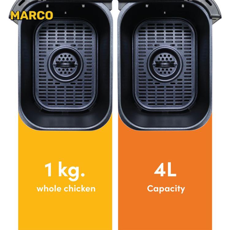 سرخ کن ( هواپز) دو سبد Nutricook Air Fryer Duo AF800 دارای دو سبد بسیار بزرگ با کنترل مستقل است تا بتوانید غذاهای مختلف را به روش های مختلف به طور همزمان بپزید. یادآوری تکان دادن. Air Fryer Duo همراه با یادآور تکان دادن که به شما این امکان را میدهد بدانید چه زمانی باید محتویات را تکان دهید تا یکنواخت سرخ شوند. آشپزی در یک لمس. فقط کافی است هر یک از برنامه های پیش فرض لمسی را بزنید – سرخکردن ، کباب کردن، کباب برشته، پخت، گرم کردن مجدد و خشک کن (میوه و سبزیجات) سیستم DualCook. با ویژگی DualCook ما که به راحتی تنظیمات را در هر دو سبد تکرار می کند، وعده های غذای سرخ شده مورد علاقه خود را دو برابر کنید و در زمان صرفه جویی کنید. همگام سازی پایان. ویژگی Sync Finish ما پخت و پز را در هر دو سبد همگام می کند تا اطمینان حاصل شود که غذاها همزمان آماده هستند.
