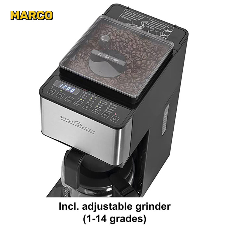 قهوه ساز گریندر دار پروفی کوک آلمان ProfiCook PC1138 محصول شرکت آلمانی «پروفی کوک» که به عنوان یکی از شرکت های پیشرو در حوزه تولید لوازم آشپزخانه از جمله قهوه ساز ها و اسپرسو ساز ها می باشد، یکی از بهترین قهوه ساز های ساخته شده تا کنون را طراحی و تولید کرده است. قهوه ساز پروفی کوک 1138 یک قهوه ساز کامل است که به آسیاب های پیشرفته 14 حالته مجهز می باشد. پنل کنترل لمسی دستگاه از امکانات برخوردار است. این محصول دارای بدنه ی بسیار مقاوم و زیبا است که میتواند سالیان سال به شما قهوه های بسیار خوشمزه بدهد و باعث زیبایی آشپزخانه شما شود همچنین داشتن امکان آسیاب قهوه قبل از سرو باعث خوش عطر تر شدن قهوه های شما می شود