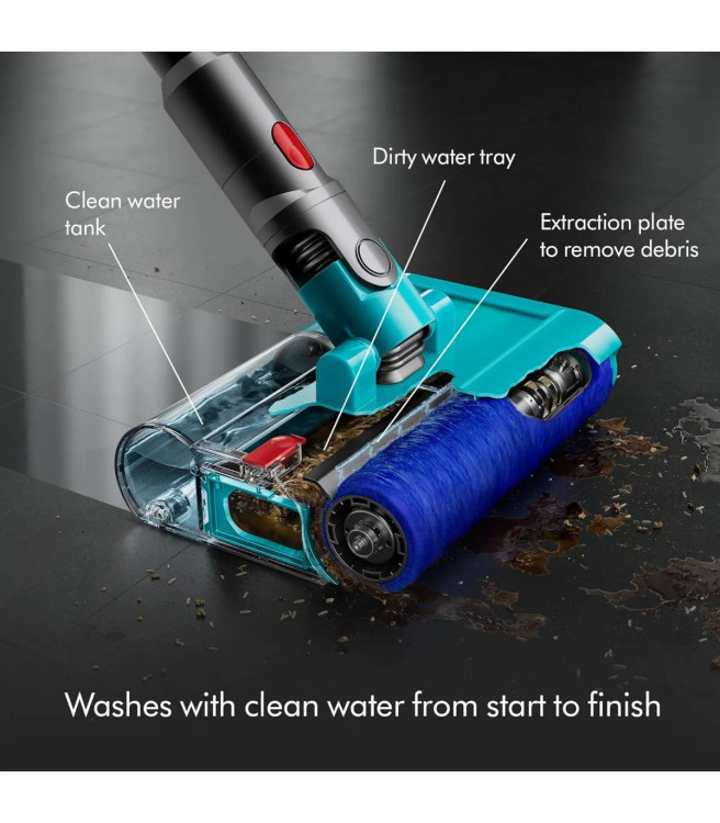 سری غلتک تی کشی Submarine™ کثیفی و لکه های مقاوم را از انواع کفپوش مانند کاشی، سنگ، چوب، سرامیک و لمینت پاک می کند.این غلتک مرطوب ، مایعات، زباله ها و لکه ها را جمع می کند که با هر چرخش به طور مداوم از روی فرچه خارج شده و به مخزن زباله ها هدایت می شوند.برخی از روش های تی کشی ، آثار و رگههایی از خود به جای می گذارند اما غلتک تی Dyson Submarine به گونهای طراحی شده است که با مکش کفپوش ابتدا هر چی مانده باشد را جذب و سپس سطح را تمیز میکند .