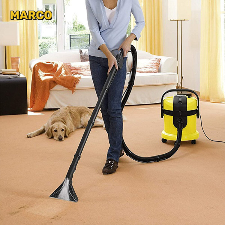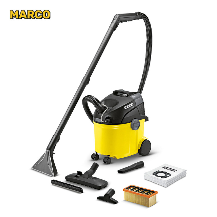 سرامیک و فرش و موکت شو کارچر آلمان Karcher SE 5100 از جمله بهترین تولیدات این کمپانی است. این دستگاه میتواند انواع فرش، موکت، تابلو فرش، سرامیک و... را بشوید. فرش شویی با قدرت موتور 1400 وات و مجهز به دو مخزن 4 لیتری تمیز و کثیف. سیستم اسپری آب و مکش قدرتمند، قابلیت استفاده به عنوان جارو برقی تر و خشک، قابلیت تغییر سریع حالت مکش خشک و تر بدون نیاز به تعویض فیلتر و همچنین قابلیت قرارگیری لوازم جانبی بر روی بدنه از مهمترین ویژگیهای فرش شور سرامیک شورSE5100 کارچر است. علاوه بر آنچه گفته شد این دستگاه با استفاده از نازل مخصوص طراحی شده که سطح شست و شو شده تا 50% سریعتر خشک میشود. شلنگ 2 متری به همراه دسته، 2 لوله رابط پلاستیکی، نازل کف دو حالته، نازل باریک، نازل کوچک، سری پارویی برای شست و شوی فرش و سرامیک و یک پاکت کاغذی بعلاوه یک فیلتر تخت از جمله لوازم جانبی این فرش شوی کمپانی کارچر است.