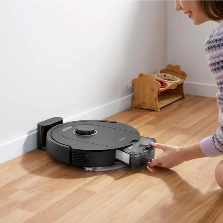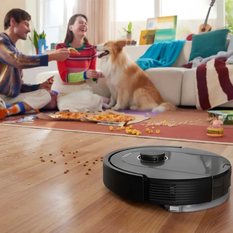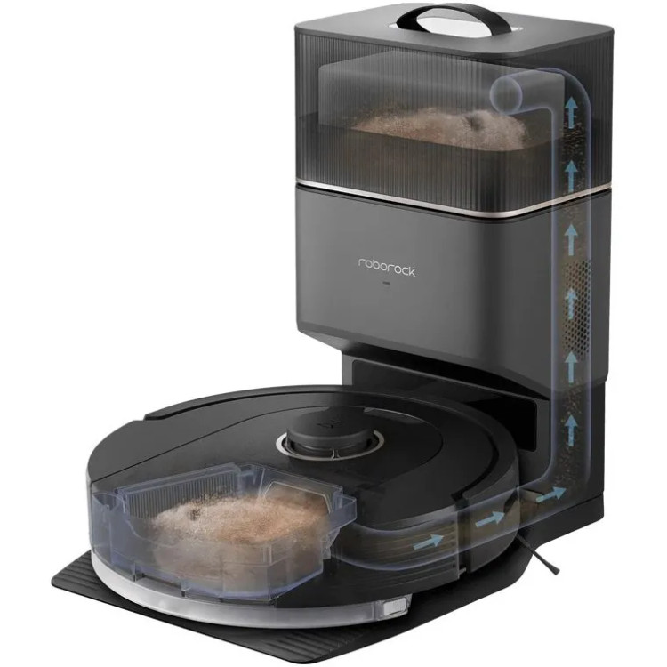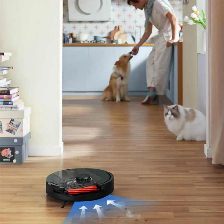 جاروبرقی رباتی Q5 Pro پلاس با مکش قدرتمند 5500 پاسکال به همراه یک رولر دوتایی، 20 درصد بیشتر و بهتر، خاک و زباله رو از روی زمین حذف میکنه و در محفظهی زبالهی بزرگ 770 میلیلیتریِ داخلِ ربات، جمع آوری میکنه. بعد از پرشدن این مخزن، جارو به صورت خودکار زبالهها رو داخل کیسه زبالهی 2.5 لیتری داکِ شارژ تخلیه میکنه. این جارو رباتیک یکی از قویترین جاروهای روبوراک برای جارو کردن فرش هست و نیازهای یک خانهی بزرگ، با خانوادهای که حیوان خانگی یا بچه دارن رو رفع میکنه. در این جارو هوشمند رباتی، برای تیکشی مخزن آب 180 میلیلیتری در کنار مخزن زبالهی کشویی وجود داره که به کمک یک پد پارچهای میکروفایبر، لکههای گرد و غبار رو از روی سطوح سخت مثل پارکت، چوب، سرامیک و کاشی حذف میکنه. برای تنظیم میزان رطوبت تی، در قسمت زیرین این مخزن آب، یک سوییچ وجود داره و با بالا و پایین بردن آن میتوان 2 سطح میزان رطوبت تی رو به صورت دستی انتخاب کرد.