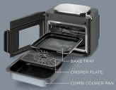 ◾این دستگاه دارای تکنولوژی combi cooker technology است که با داشتن المنت پایین و بالا و گردش هوای داغ به شما امکان طبخ دو مدل غذای مختلف بصورت همزمان را میدهد که طبقهی پایین غذای کبابی آبدار و طبقه ی بالا غذای ترد و کریسپی به شما میدهد
