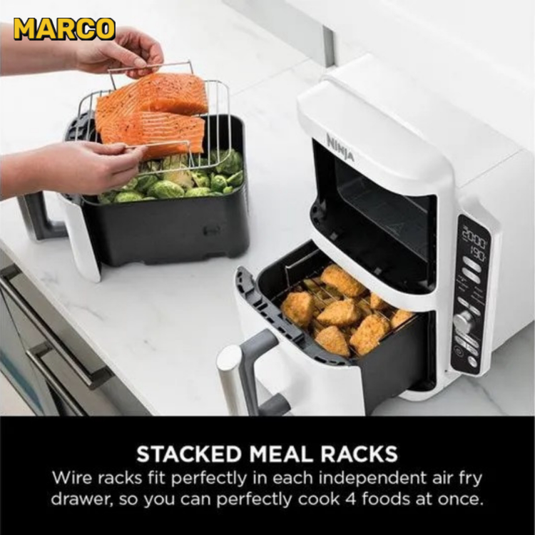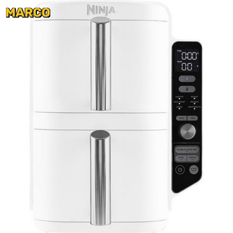 با دو کشو که روی هم چیده شدهاند، سرخکننده هوای 2 طبقه Ninja Double Stack XL 30 درصد باریکتر است*. با این حال، ظرفیت آن دو برابر است - مناسب برای آشپزخانه های کوچکتر، خانواده های بزرگ و بسیاری از مهمانان. هر کشو 4.75 لیتری برای یک مرغ 1.4 کیلوگرمی مناسب است - یا از درج های قفسه Crisper Double Stack برای دو برابر ظرفیت** برای پخت همزمان چهار غذا استفاده کنید. ایده آل برای سرو حداکثر 8 نفر. به لطف کشوهای قابل کنترل مستقل، می توانید بین 6 عملکرد مختلف پخت و پز را انتخاب کنید: سرخ کردن با هوای گرم، حداکثر ترد، برشته کردن، پخت، خشک کردن، گرم کردن مجدد. عملکرد، زمان و دمای متفاوتی را می توان در هر کشو تنظیم کرد - با عملکرد SYNC هر دو ظرف به طور همزمان آماده هستند. به علاوه، این سرخکن بادی تا 55 درصد سریعتر از فر *** است و انرژی کمتری مصرف می کند****. استفاده از این سرخ کن بادی دو پشته به لطف یک کتابچه دستور پخت در بسته بندی آسان است و به لطف سبدهای نچسب و قابل شستشو در ماشین ظرفشویی و قفسه های ترد، به راحتی تمیز می شود. * در مقابل AF400. ** هنگام استفاده از قفسه های متحرک. ***تست شده با انگشت ماهی و سوسیس. ****تست و محاسبات بر اساس زمان پخت توصیه شده برای سوسیس و کالباس با استفاده از ویژگی Air Fry در مقایسه با فرهای سنتی.