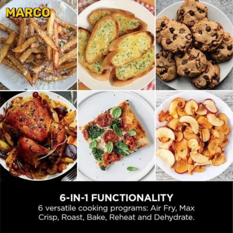 شامل 2 کشو 4.75 لیتری نچسب قابل شستشو در ماشین ظرفشویی 2 بشقاب ترد 2 قفسه استیل ضد زنگ 1 راهنمای دستور العمل مقادیر پردازش