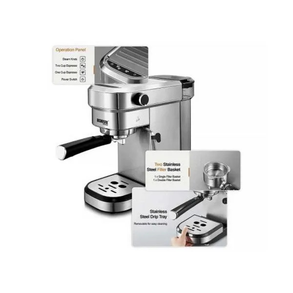 امکانات اسپرسوساز: تمپر قهوه ، تولید کف شیر ، سیستم کاپوچینو ساز ، سینی چکه گیر ، نازل بخار