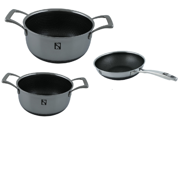 ظروف استیل نومر از سه لایه فلز تشکیل شده که در دو طرف استیل و در وسط آن آلومینیوم به کار رفته است. ظروف استیل بهترین متریال برای پخت و پز است که طعم و مزه غذاها را به بهترین شکل حفظ میکند؛ آلومینیوم موجود در این ظروف باعث توزیع یکنواخت حرارت میشود که ظرف را در همه نقاط بصورت یکسان گرم میکند.