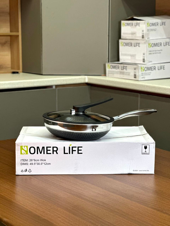 ماهیتابه وک استیل نچسپ(کف لیزری)nomer سایز 26 h2 ضمانت اصالت کالا و ارسال فوری و رایگان /گارانتی 24 ماهه مارکو تجارت