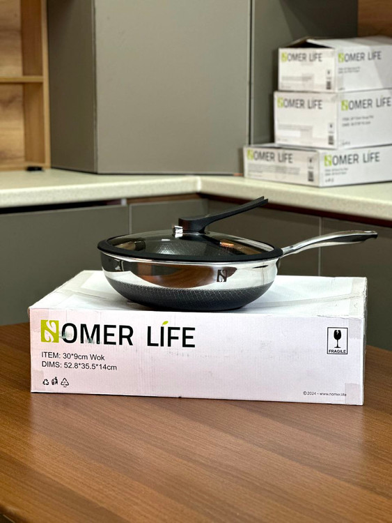 ماهیتابه وک استیل نچسپ کف لیزری nomer سایز 30 h2 ضمانت اصالت کالا و ارسال فوری و رایگان /گارانتی 24 ماهه مارکو تجارت