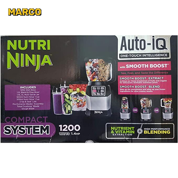 – دارای ۲ پارچ اسموتی از جنس تریتان با ظرفبت های ۶۵۰ و ۵۰۰ میلی لیتر – یک پارچ مخلوط کن با ظرفیت ۱.۴ لیتر – یک پارچ مخلوط کن و غذاساز با ظرفیت ۱.۲ لیتر – دارای سری خمیر زن (همزن) – دارای تیغه مخلوط کن ۴ پره طراحی انحصاری نینجا – دارای برنامه های Auto IQ انحصاری نینجا شامل ( خردکن ، مخلوط کن ، تهیه اسموتی ، اسموتی نرم و سرعت کم و سرعت و عملکرد پالس |
