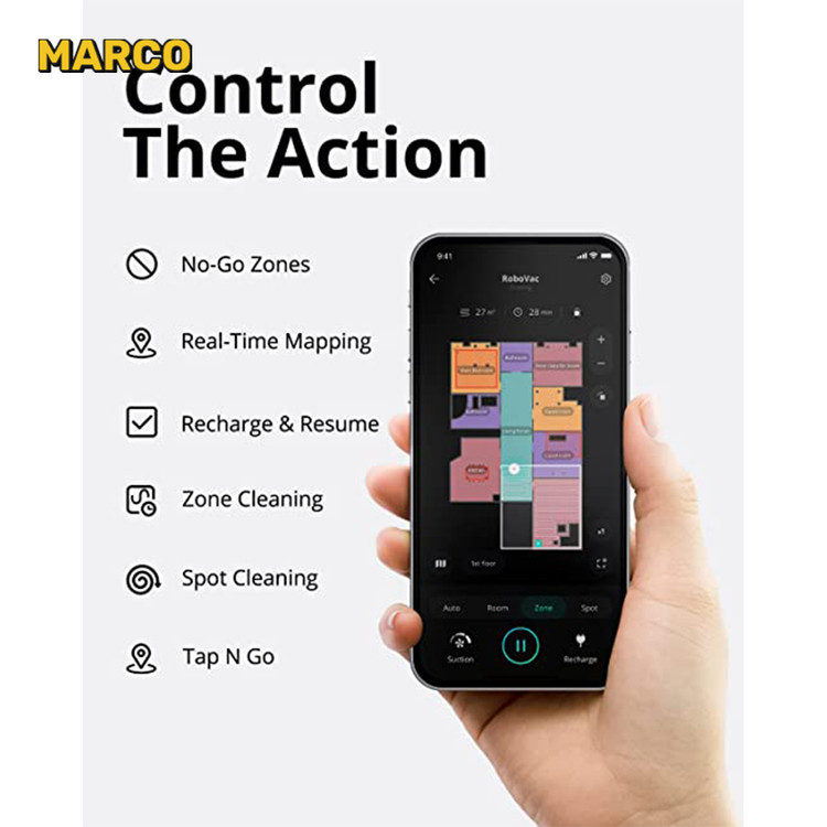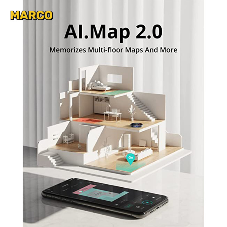 - فناوری AI.Map 2.0: به لطف نقشههای چند طبقه بهطور خودکار توسط دستگاه تولید شده، RoboVac میداند کجا را تمیز کند، چه در طبقه همکف، زیرزمین یا اتاق زیر شیروانی. در این برنامه می توانید مناطق تمیز کردن و مناطق ممنوعه را از جمله موارد دیگر تنظیم کنید.