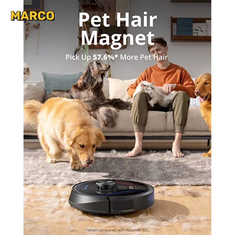 این دو توربین جریان هوای بیشتری را ارائه میکنند و به آن اجازه میدهند 57.6 درصد موهای حیوان خانگی بیشتری را در مقایسه با RoboVac 30C جاروبرقی بکشند.